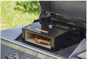 Description: A grill-top pizza oven box that sits on most gas grills, transforming them into a pizza oven.